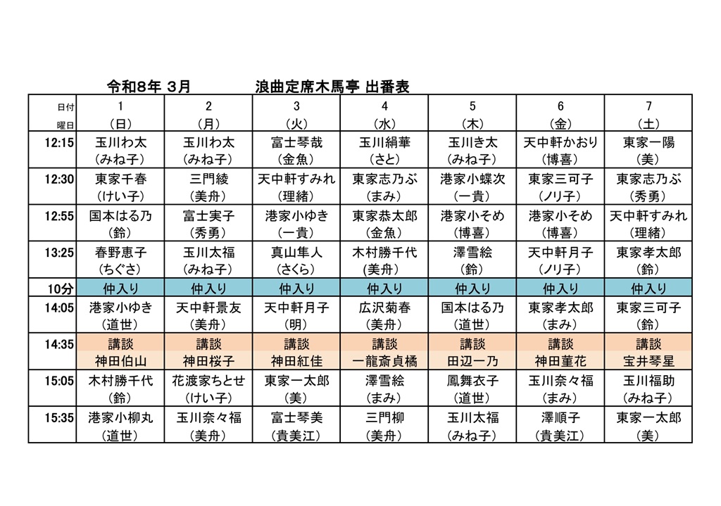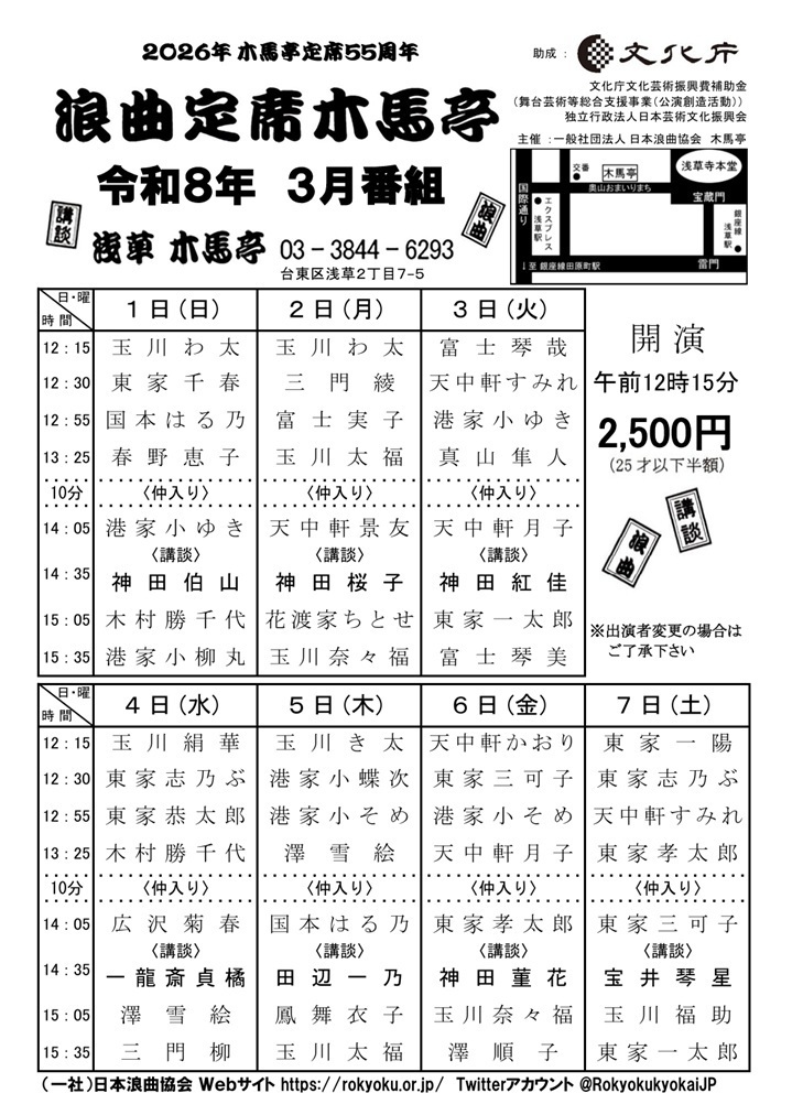 ※木馬亭定席につきましてはチケット予約制度はございません。